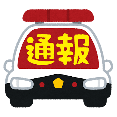 パトカーのイラストの上に「通報」と書かれたイラスト文字です。