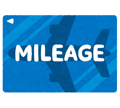 飛行機に乗った距離(マイレージ)に応じてポイントが貯まる、航空会社が提供するポイントカードのイラストです。