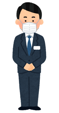 スーツを着た受付のイラスト(男性)マスクを付けたスーツの人のイラスト(男性)